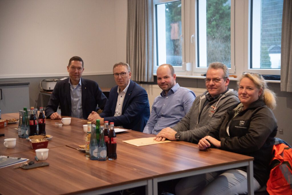 Bürgermeister Herr Halding-Hoppenheit, Herr Hefner, Herr Baumert, Herr Wippermann sowie Frau Moldrickx waren zu Gast, um gemeinsam mit uns über ein Thema zu sprechen, das für unseren Verein von enormer Bedeutung ist – die Sanierung bzw. den möglichen Neubau unserer Sportanlage im kommenden Jahr.