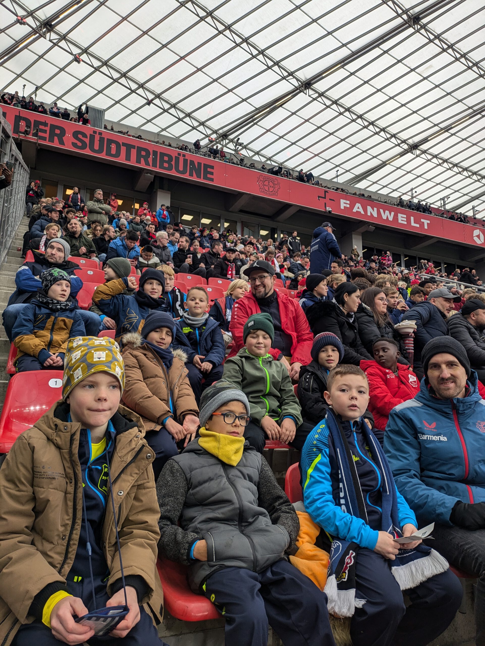 Unsere U9 durfte ein echtes Highlight erleben: Die Jungs waren zu Gast in der BayArena und konnten ein Heimspiel des Bundesliga-Teams von Bayer Leverkusen live von den Tribünen aus verfolgen. Für viele war es der erste Besuch in einem großen Stadion – und entsprechend groß war die Begeisterung. Vom ersten Aufwärmen der Profis bis zum Abpfiff verfolgten die Kinder jede Szene mit glänzenden Augen. Die Stimmung im Stadion, die Fangesänge und natürlich die spielerische Qualität auf dem Platz machten diesen Tag zu einem besonderen Erlebnis für unsere jungen Kicker. Sichtbar beeindruckt nahmen sie viele Eindrücke mit, die sicherlich auch ihre eigene Motivation auf dem Platz weiter stärken.